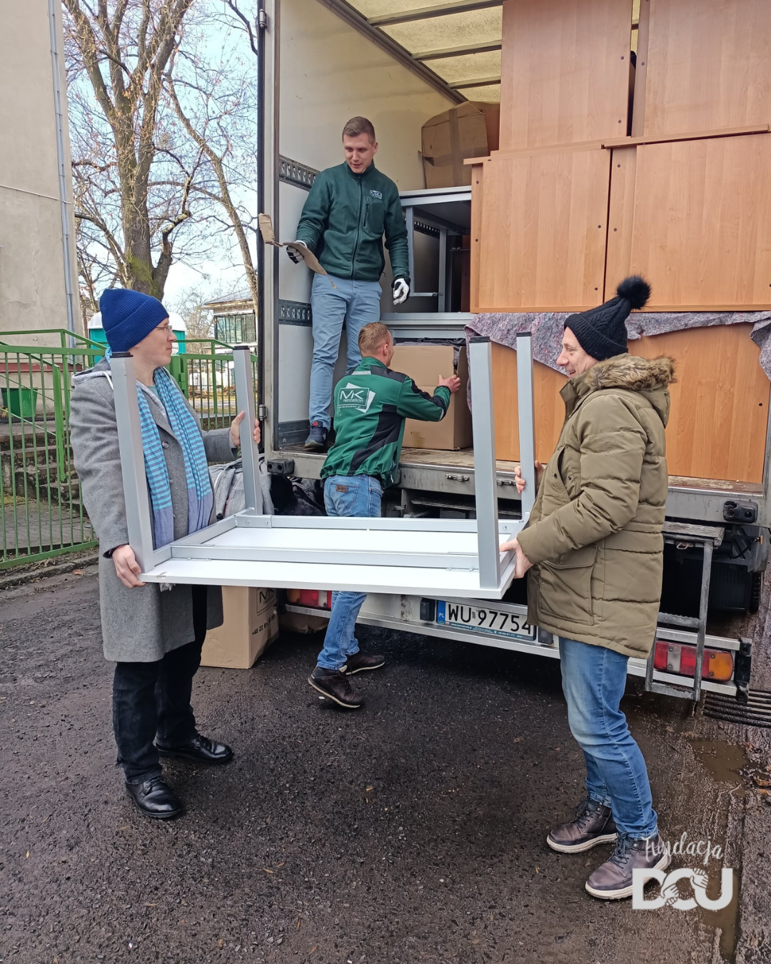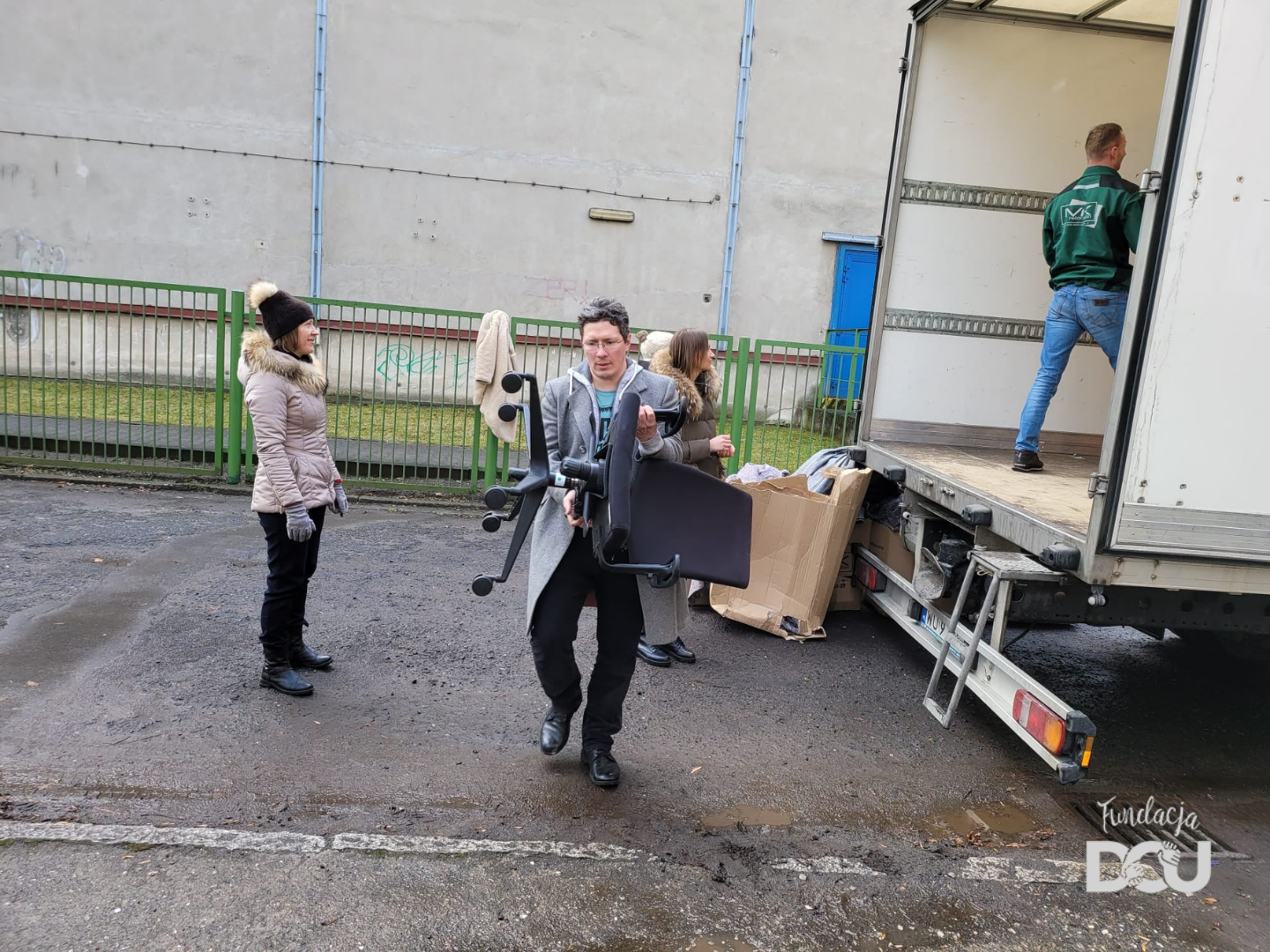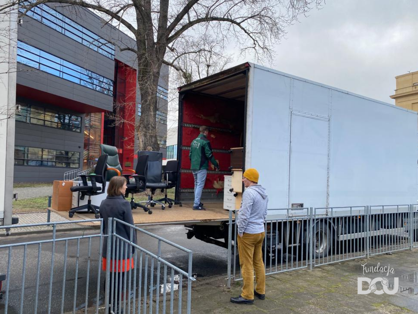 W sumie, do Wrocławia przyjechało 5 ciężarówek mebli i sprzętów biurowych! Ciężarówki przywiozły kilkaset różnych mebli (biurek, kontenerków, krzeseł biurowych, szaf, regałów …), które mogliśmy przekazać tam, gdzie na nie czekano. Dzięki wielkiemu zaangażowaniu wolontariuszy meble szybko i sprawnie udało się wypakować z transportu i przekazać potrzebującym placówkom.