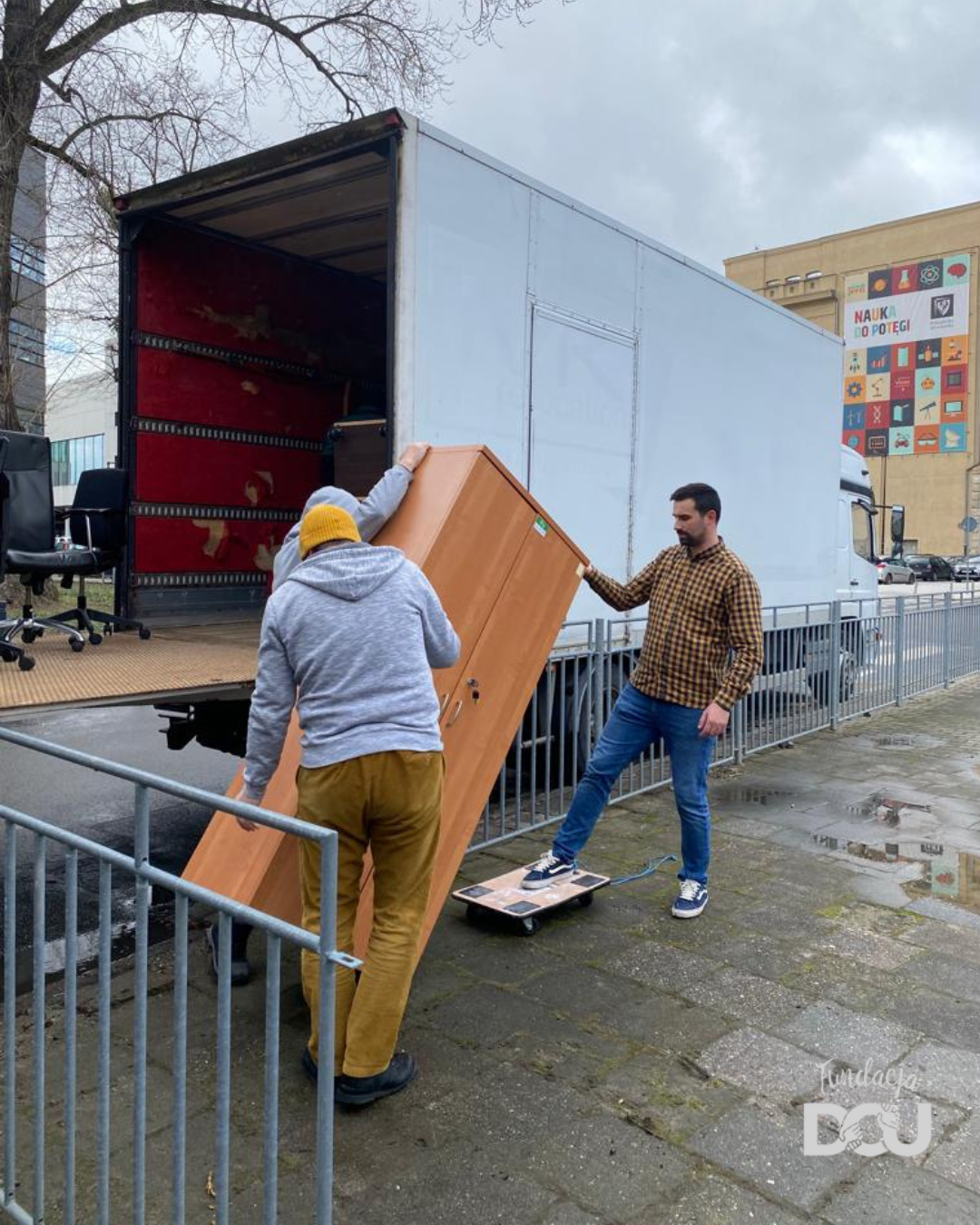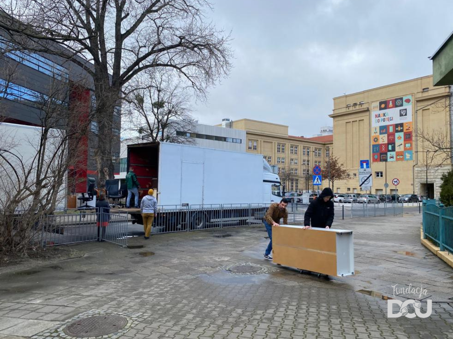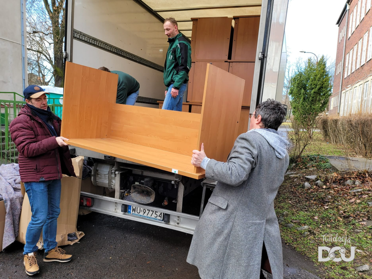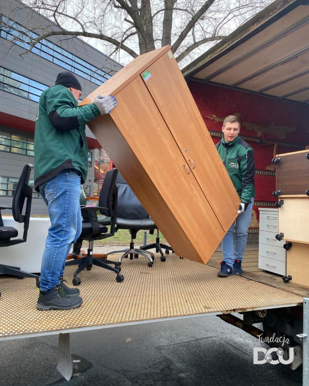 W sumie, do Wrocławia przyjechało 5 ciężarówek mebli i sprzętów biurowych! Ciężarówki przywiozły kilkaset różnych mebli (biurek, kontenerków, krzeseł biurowych, szaf, regałów …), które mogliśmy przekazać tam, gdzie na nie czekano. Dzięki wielkiemu zaangażowaniu wolontariuszy meble szybko i sprawnie udało się wypakować z transportu i przekazać potrzebującym placówkom.