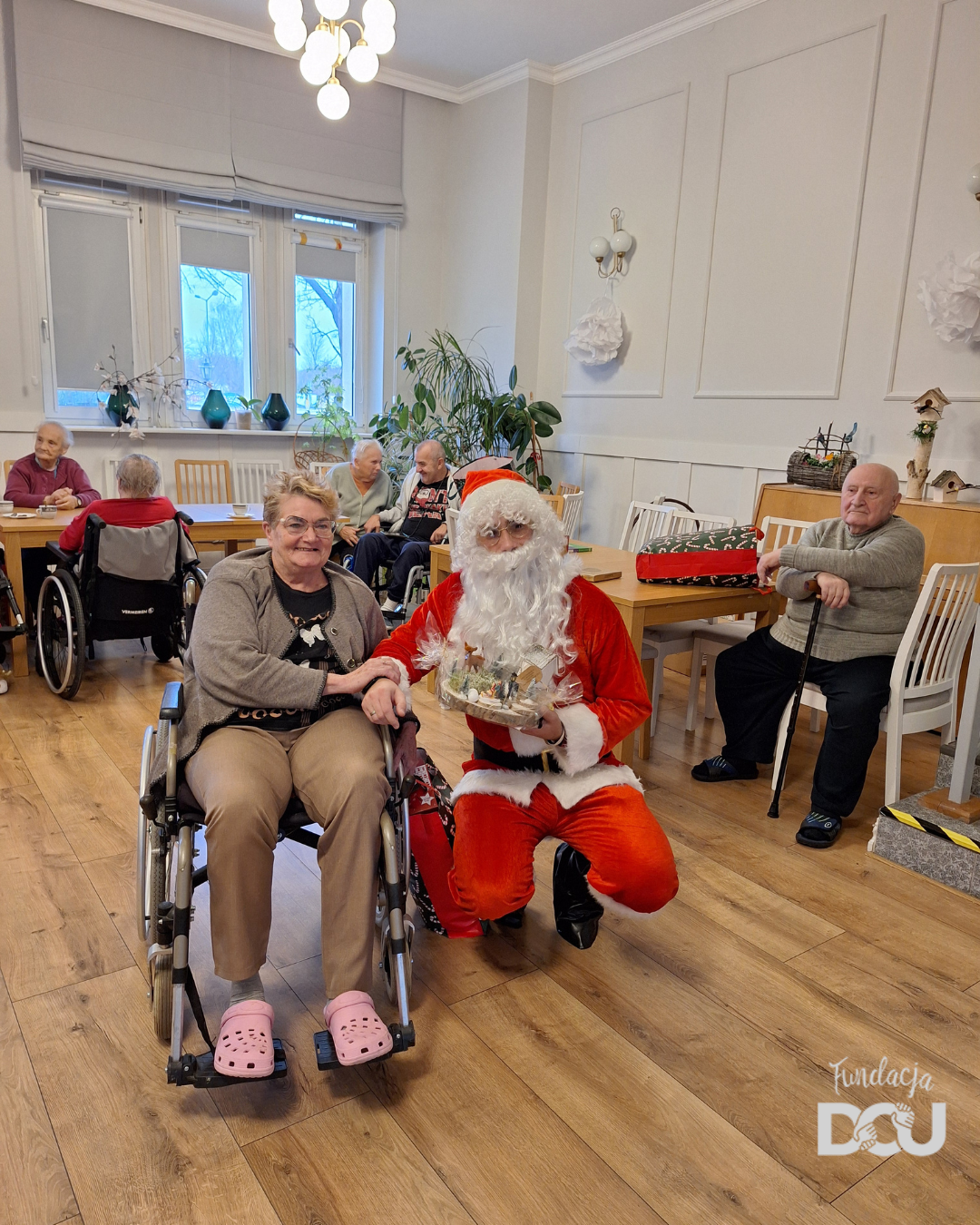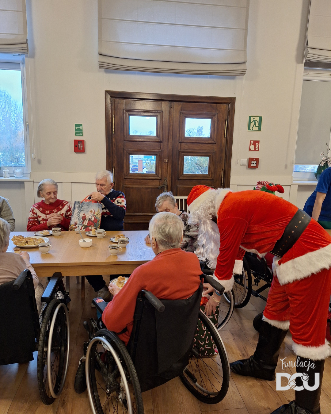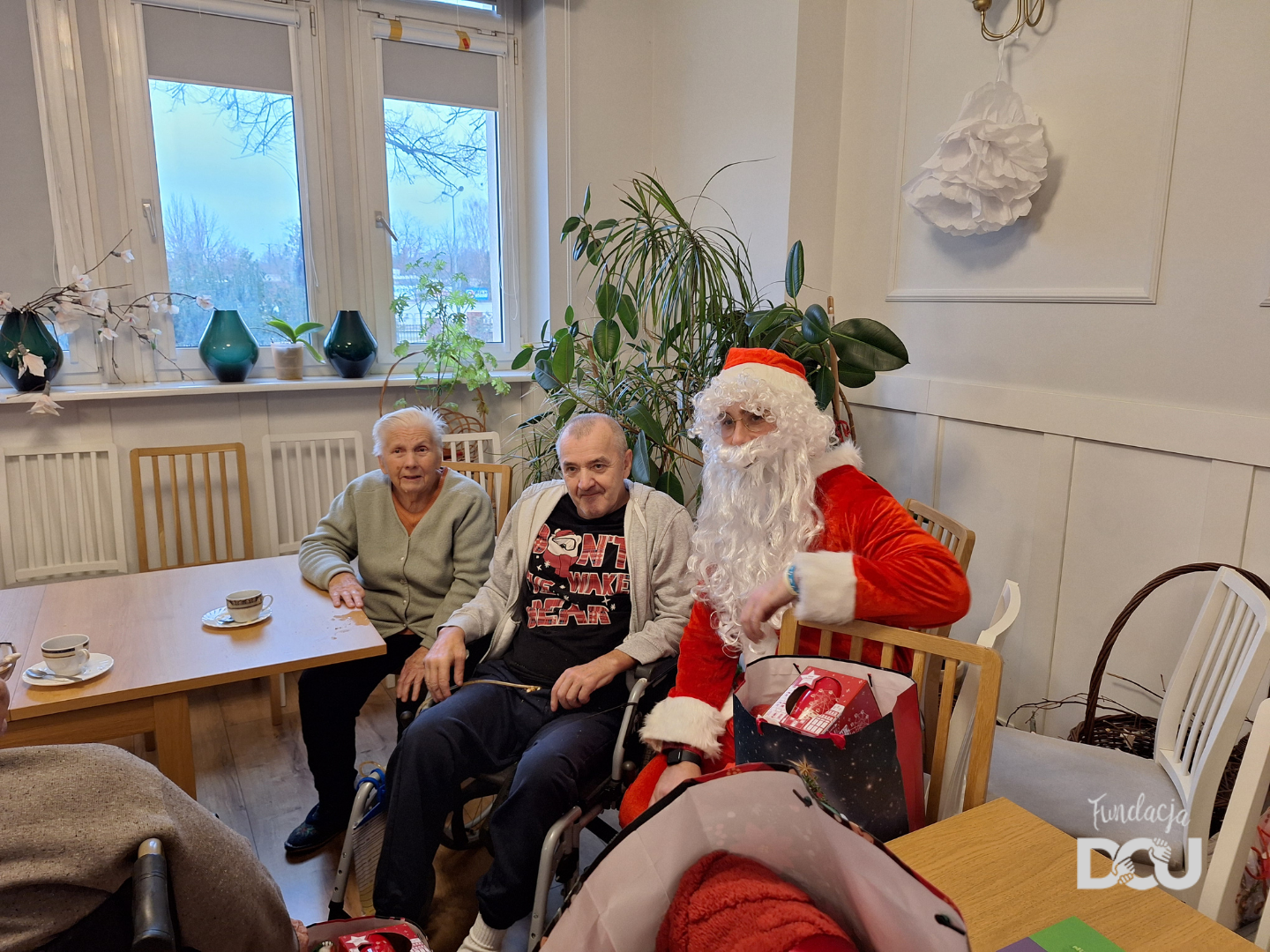 6 grudnia nasz Mikołaj wraz ze swoimi pomocnicami wyruszył do Legnicy, by osobiście wręczyć paczki seniorom. Spotkanie było pełne serdeczności i ciepła – Mikołaj z każdym zamienił kilka słów, wręczając prezenty. Odwiedził zarówno salę główną, jak i pokoje, w których mieszkają podopieczni.