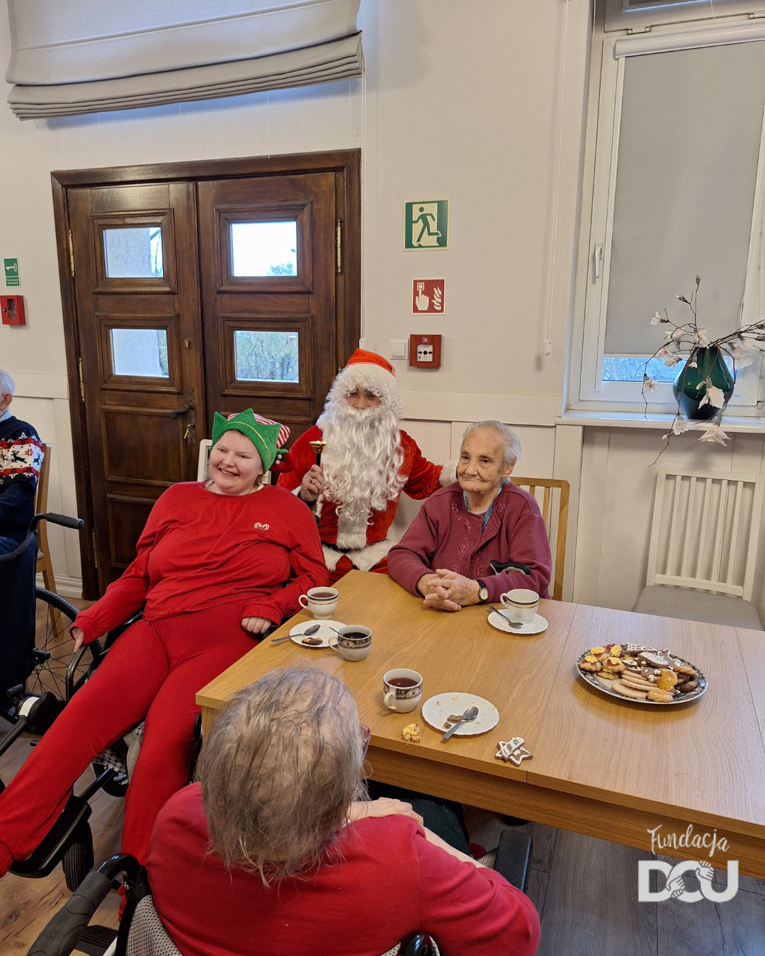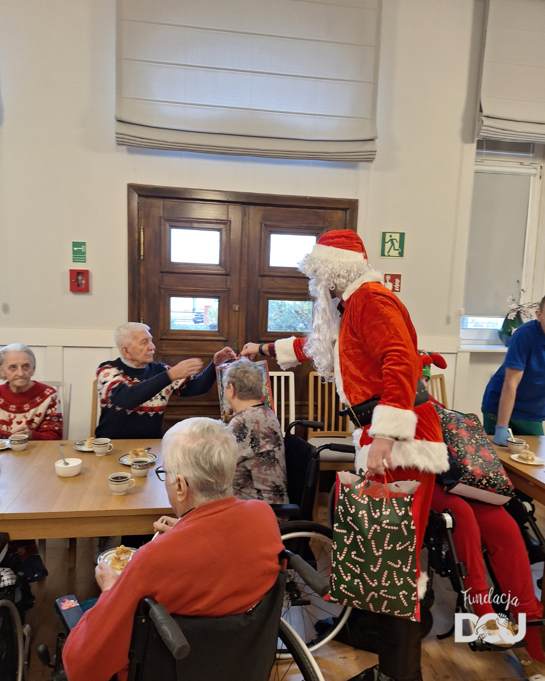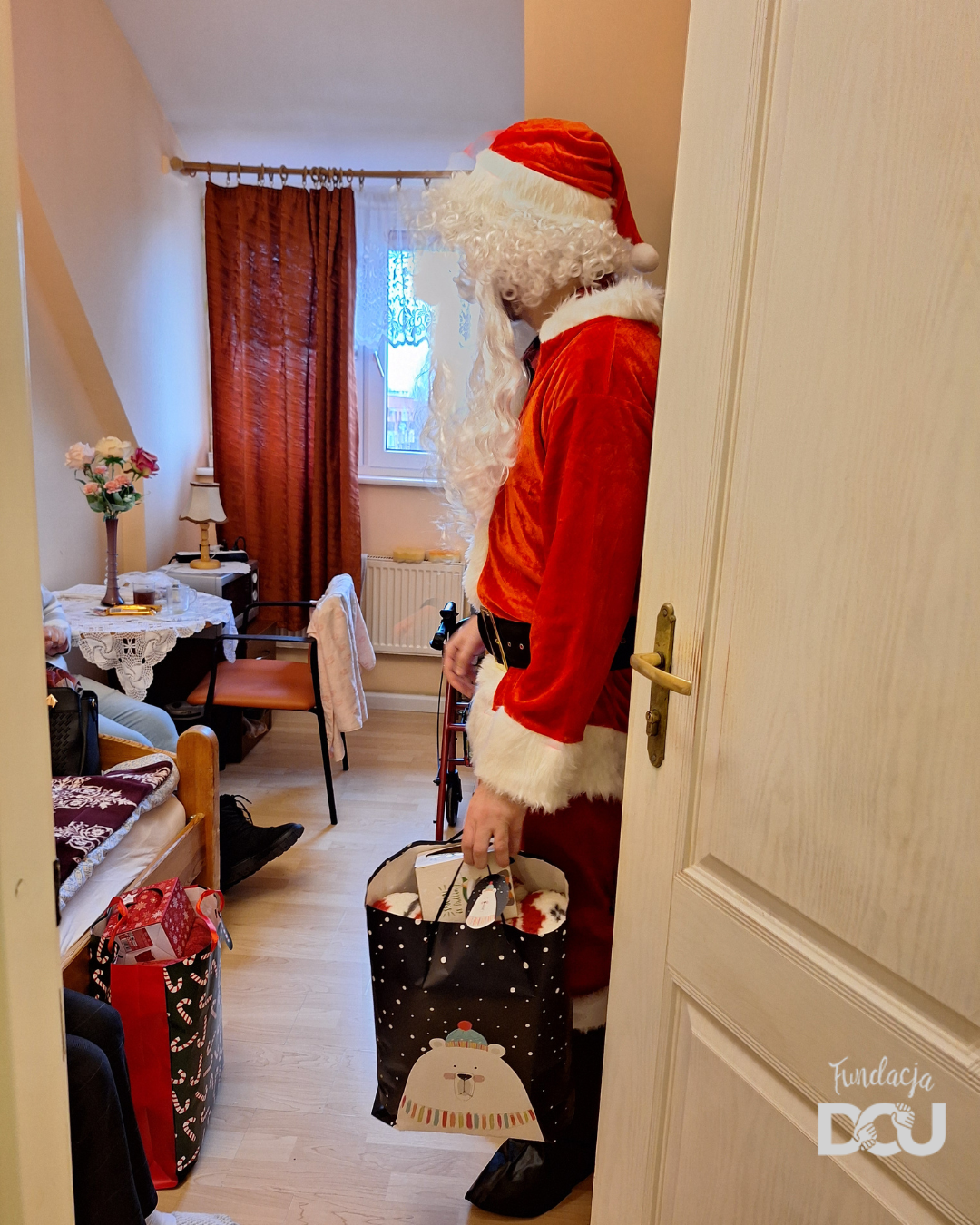 6 grudnia nasz Mikołaj wraz ze swoimi pomocnicami wyruszył do Legnicy, by osobiście wręczyć paczki seniorom. Spotkanie było pełne serdeczności i ciepła – Mikołaj z każdym zamienił kilka słów, wręczając prezenty. Odwiedził zarówno salę główną, jak i pokoje, w których mieszkają podopieczni.