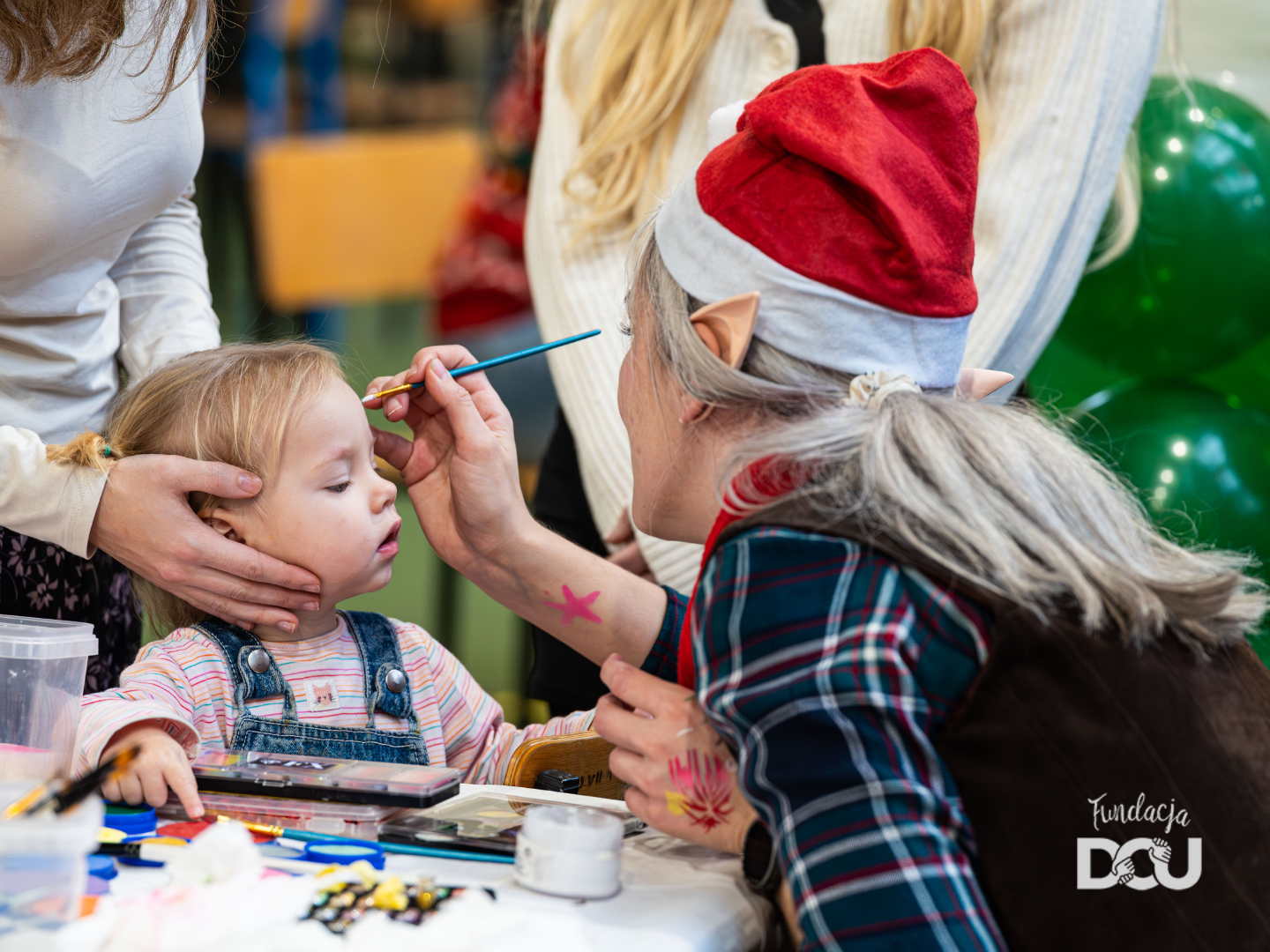 W sobotę, 7 grudnia natomiast po raz kolejny wzięliśmy udział w imprezie mikołajkowej dla podopiecznych z hospicjum dziecięcego “Formuła Dobra”. Nasi fantastyczni wolontariusze od rana pomagali w przygotowaniach sali, a potem z ogromną radością zajmowali się dziećmi: przy malowaniu buziek, przy stanowiskach kreatywnych, a nawet przy wręczaniu prezentów.