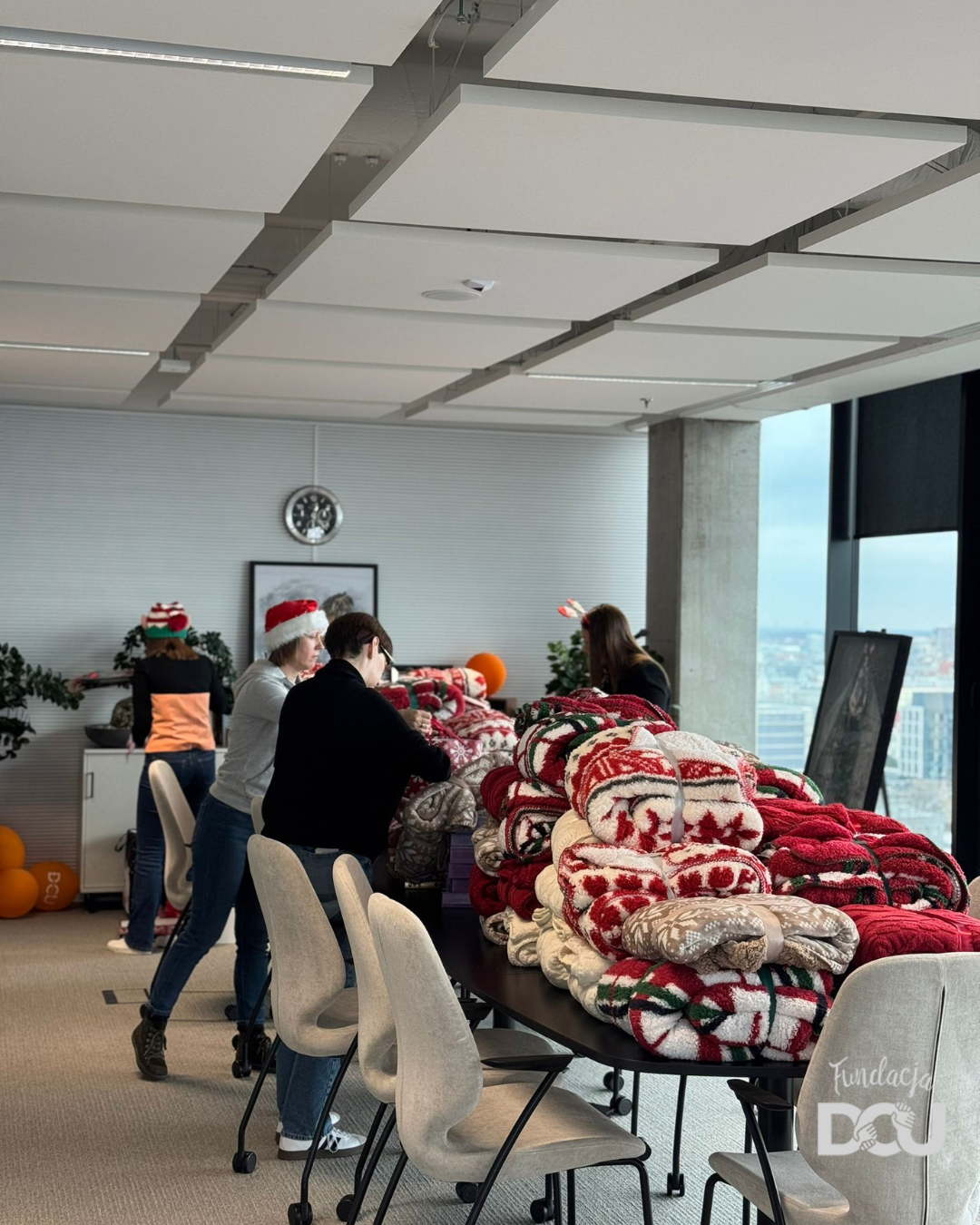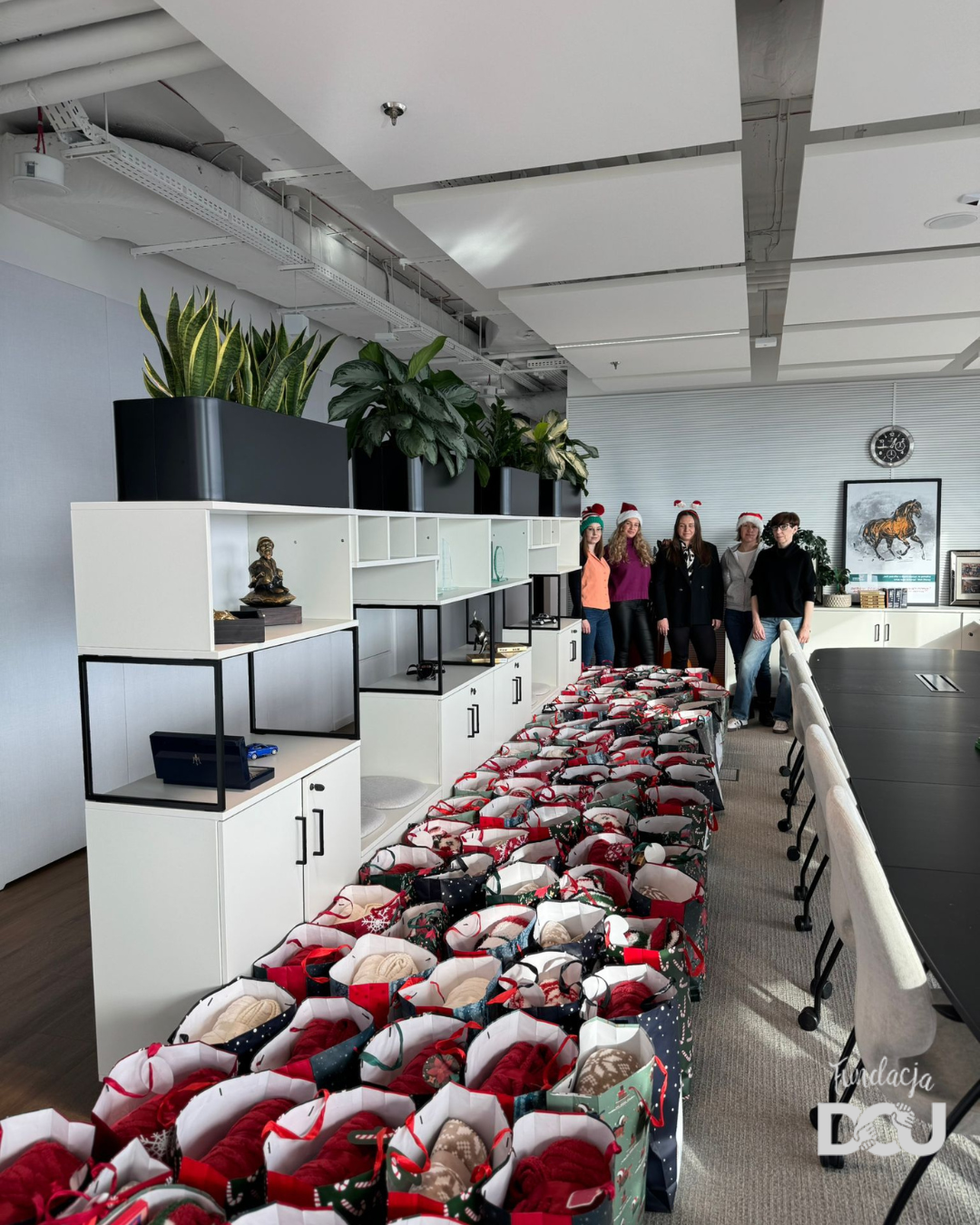 Nasz zespół zaangażował się w przygotowanie paczek dla podopiecznych z legnickiego Domu Pomocy Społecznej, który składa się z dwóch ośrodków: jednego dla seniorów, gdzie przebywa 61 osób, oraz drugiego, w którym na stałe mieszka 39 dzieci. Do paczek włożyliśmy wiele serca. Znalazły się w nich mięciutkie i cieplutkie koce, świąteczne kubki oraz słodkie niespodzianki.