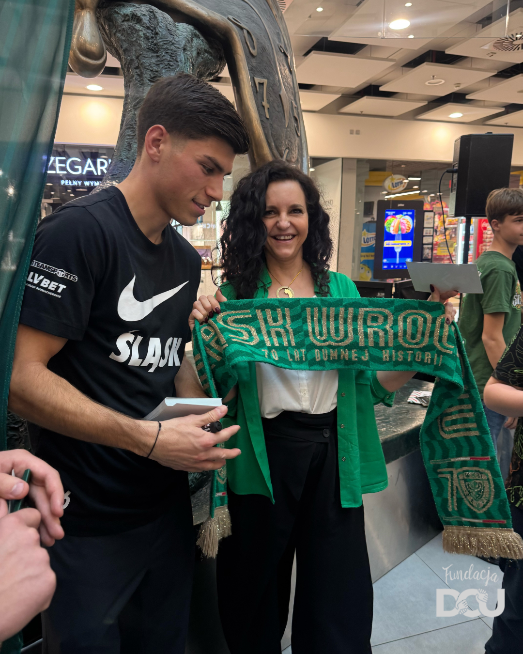 Podczas spotkania z kapitanem i zawodnikiem Luka z WKS Śląsk Wrocław z uznaniem usłyszeliśmy słowa o działaniach naszej Fundacji, która wspiera dzieci w edukacji i zdrowiu.